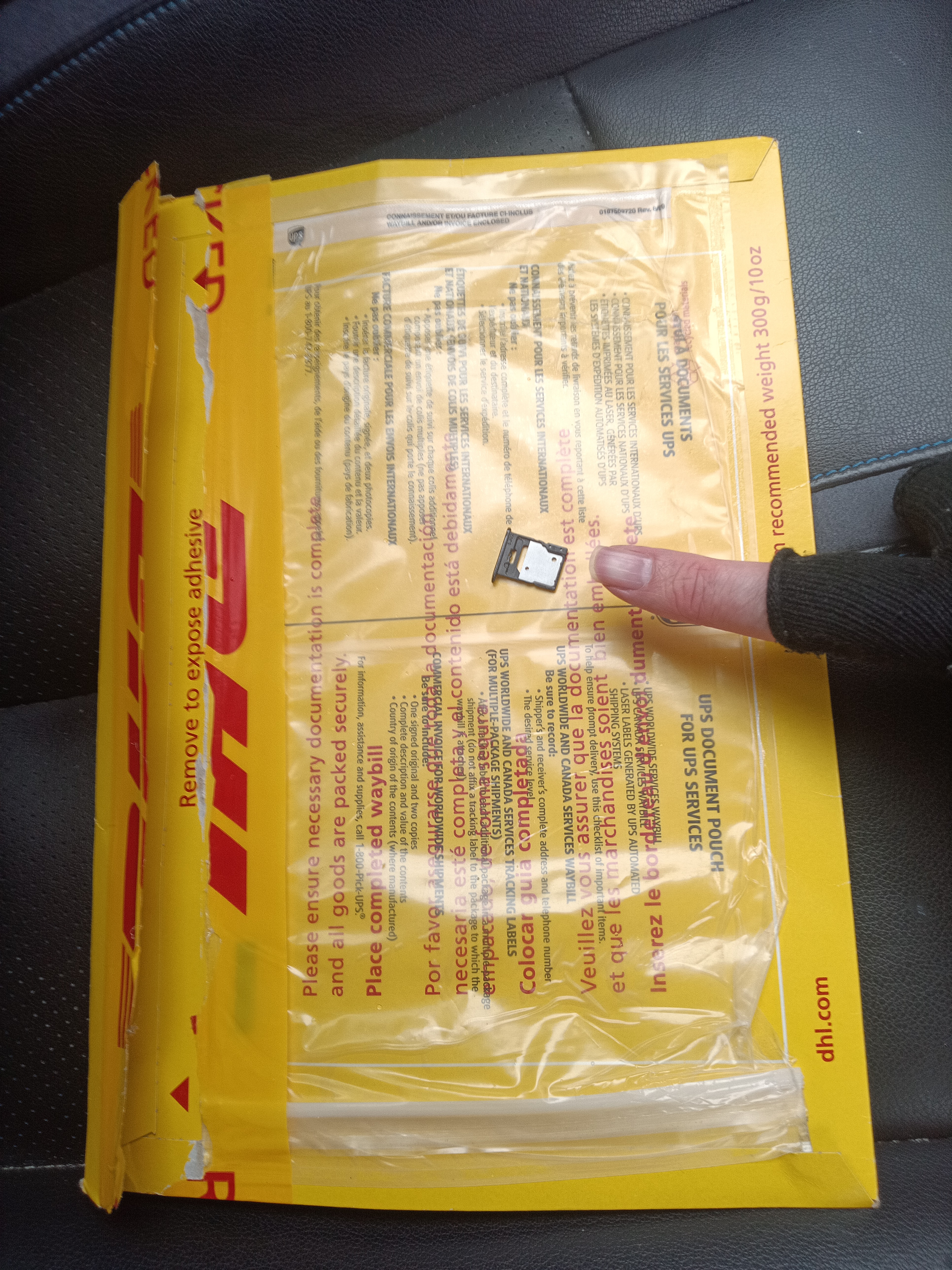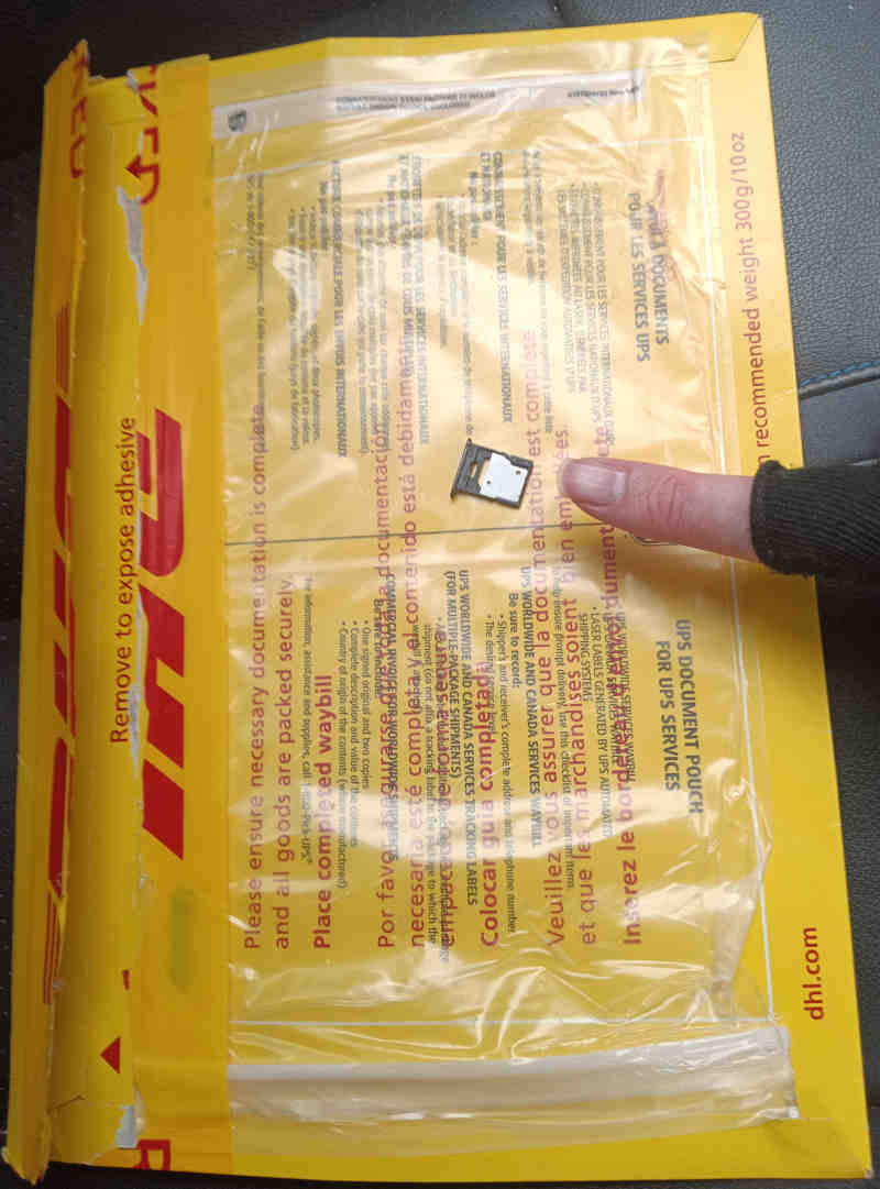 The last support request I sent included my disappointment at the time taken to resolve the issue and the proposed solution of replacing the entire phone (why have two international shipments of a fragile and expensive phone when a single letter with a cheap SIM caddy would do?). I didn’t receive a reply but the SIM caddy arrived on the 2nd of Mar. Here is a pic of the SIM caddy and the package it came in: